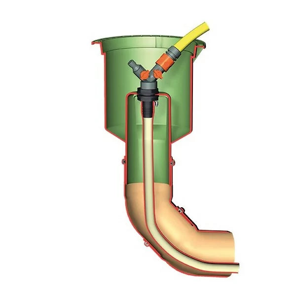Ce raccord externe de Graf est conçu pour capter facilement et confortablement l'eau de pluie d'un réservoir d'eau souterrain.